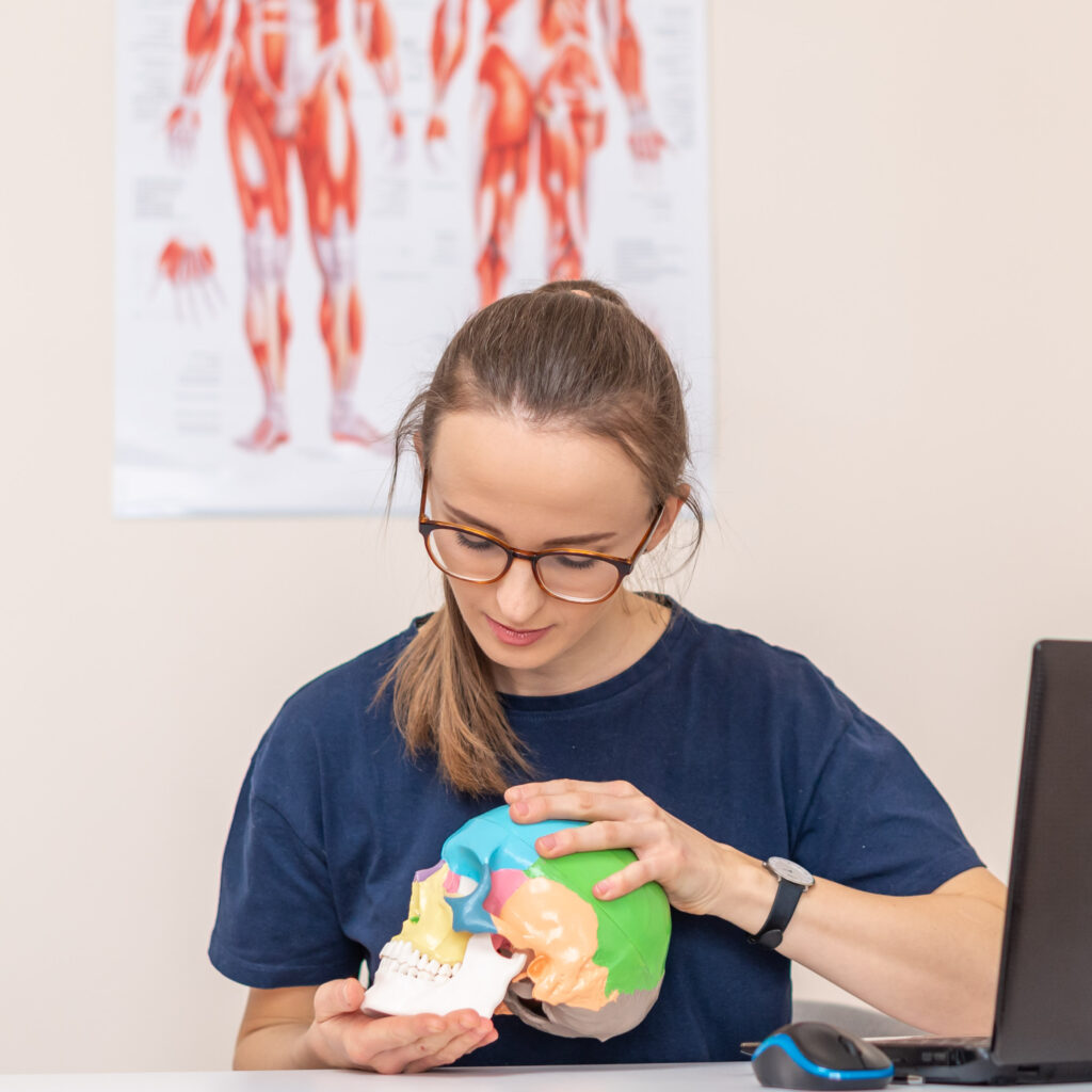 🔹 Terapia stawu skroniowo-żuchwowego – specjalistyczna praca nad mobilnością stawu, ćwiczenia i autoterapia.